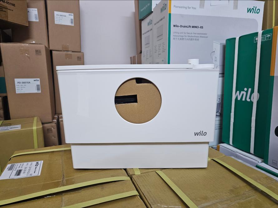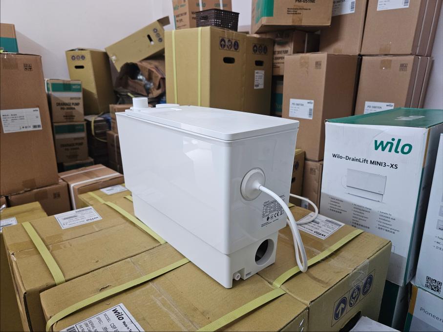 Hình ảnh thực tế và phụ kiện bơm trung chuyển Wilo DrainLift Mini3-XS/WC
